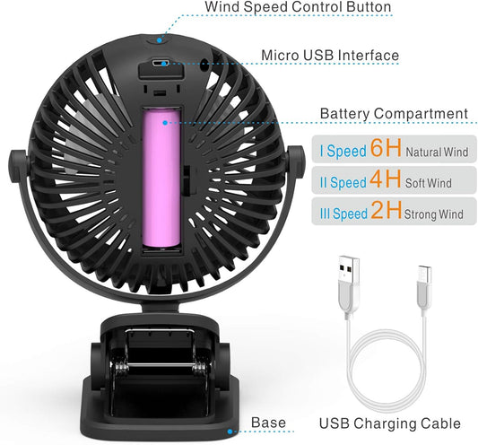 Cambond Baby Stroller Fan Clip Battery Powered Rechargeable Baby Fan