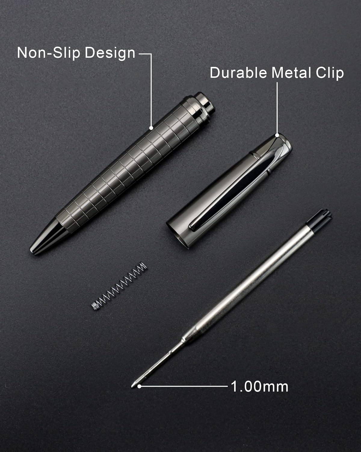 Ballpoint Pens Black Ink - Cambond Metal Pen Nice Uniform Pens for Men Business Office Police, Stainless Steel Twist Retractable 1.0 mm Medium Point Refills